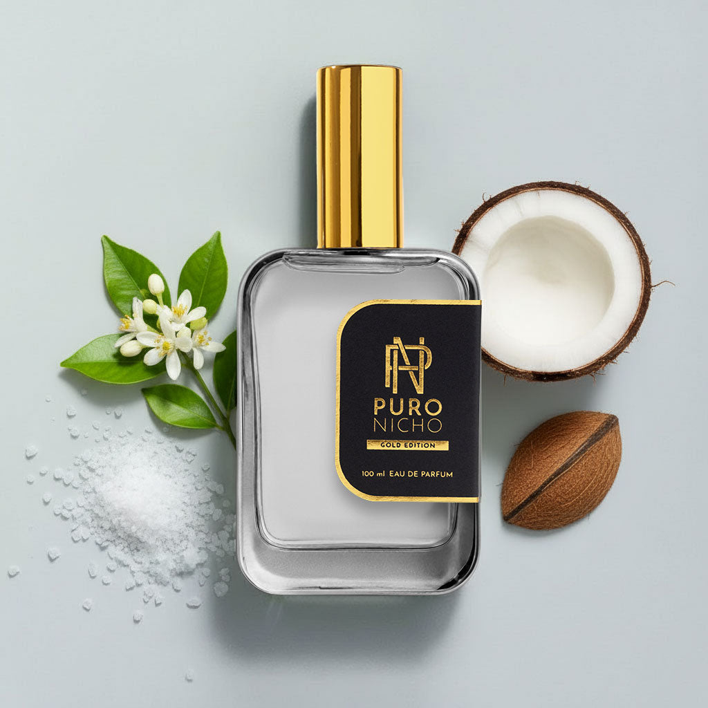A luminous, radiant, and deeply exotic fragrance. This perfume evokes the warmth of a sun-drenched island, blending bright flowers with golden citrus and a creamy-woody base that envelops the skin with sensuality. It is elegant, tropical, and luminous—a scent that celebrates light, summer, and natural beauty.