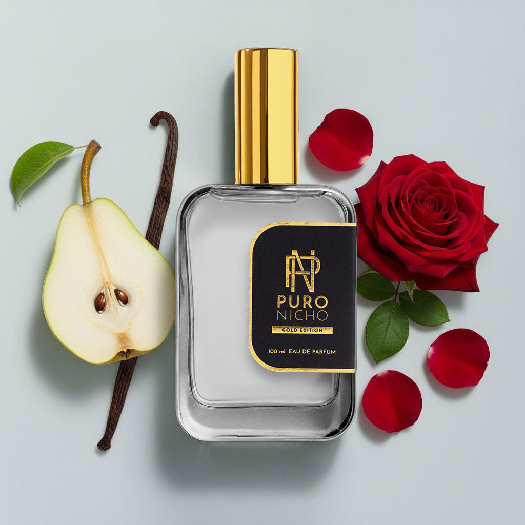Una fragancia sensual, moderna y con un carácter goloso-elegante muy reconocible. Este perfume combina un inicio afrutado brillante con un corazón floral aterciopelado y un fondo dulce-ambarado que envuelve la piel con una calidez seductora. Es femenino, adictivo y sofisticado un aroma que equilibra dulzura, elegancia y magnetismo contemporáneo.