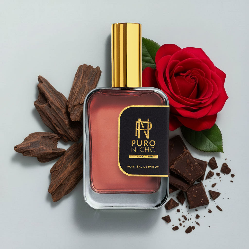Una fragancia opulenta, intensa y marcada por un aura misteriosa. Este perfume fusiona especias nobles, una rosa profunda casi carmesí y un fondo amaderado–resinoso que envuelve la piel con una calidez voluptuosa. Es sofisticado, sensual y majestuoso un aroma que transmite lujo moderno y una presencia magnética incomparable.