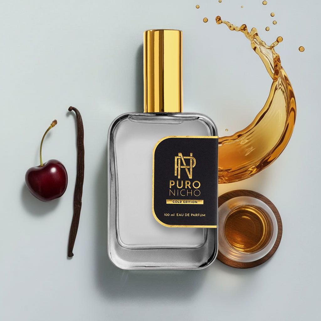 Una fragancia voluptuosa, envolvente y magnéticamente sensual. Este perfume fusiona un dulzor licoroso con un corazón floral narcótico y un fondo almizclado-ambarado que abraza la piel con intensidad adictiva. Es elegante, seductor y profundamente hipnótico un aroma que domina la habitación sin esfuerzo y deja huella durante horas.