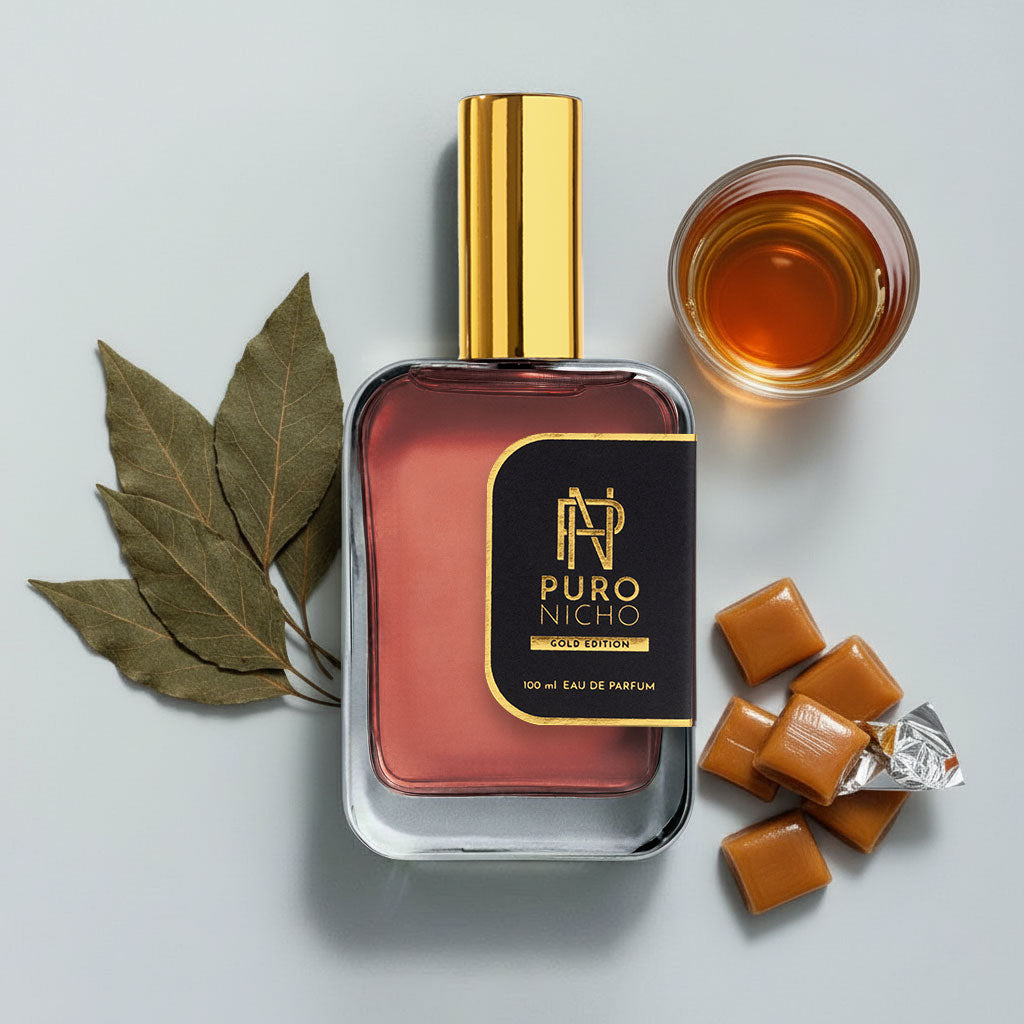 caramelo, baunilha, fava tonka, ládano, sândalo, âmbar e almíscar.